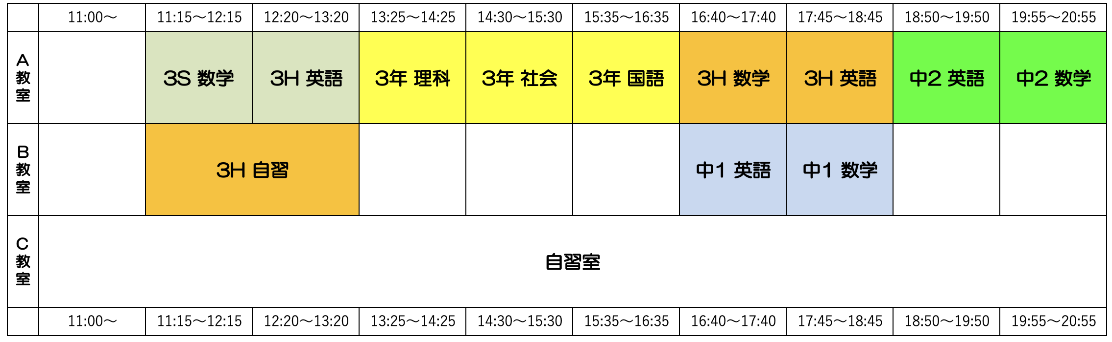 ※ 塾は毎日11:00から開けています。3年生は積極的に自習室を活用して下さい。